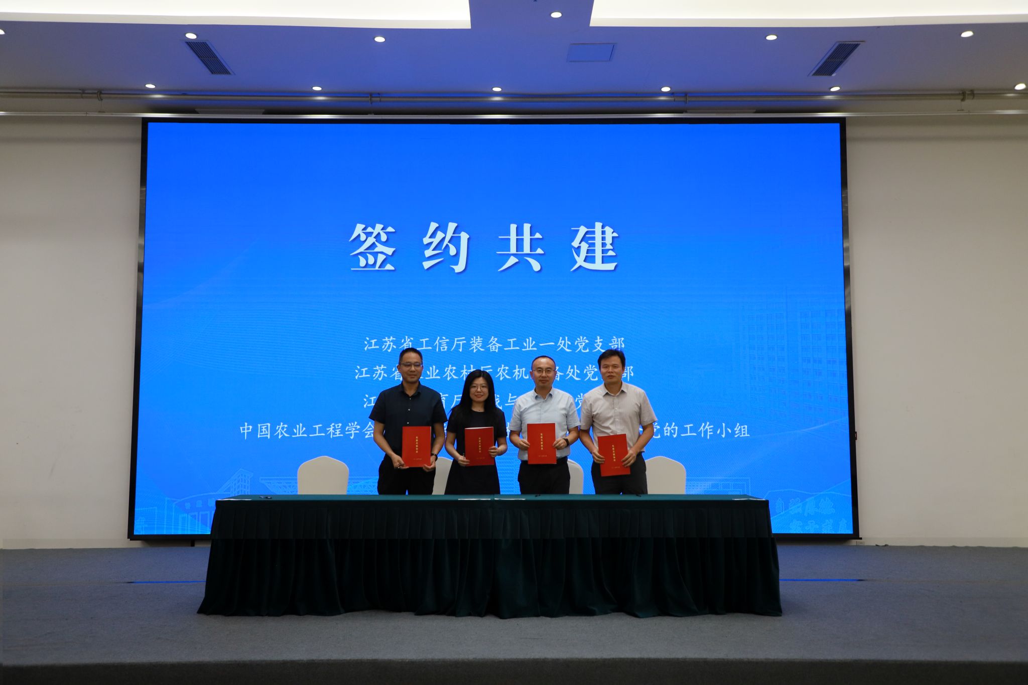 活动现场,江苏省工信厅装备工业一处党支部、江苏省农业农村厅农机装备处党支部、江苏省教育厅统战与群工处党支部、中国农业工程学会人工智能和农业机器人专业委员会党的工作小组签署党建共建协议,将通过“组织联建、资源联享、人才联育、难题联解”等方式,深化党建共建,凝聚发展合力,助力产业发展。