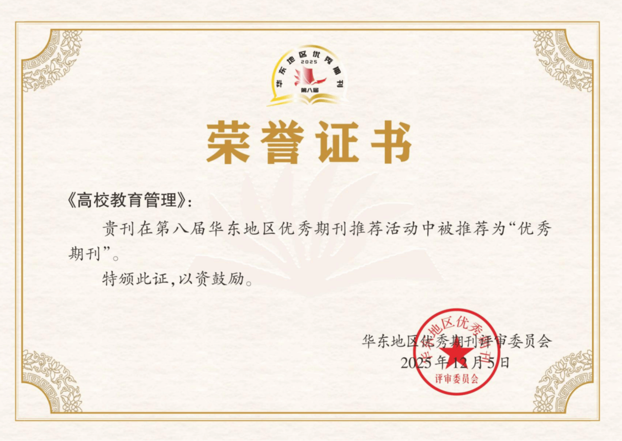 近日,华东地区期刊协会联盟公布了第八届华东地区优秀期刊名单,我校《排灌机械工程学报》《高校教育管理》《欧亿体育·(中国)官方网站学报(社会科学版)》三种期刊入选。