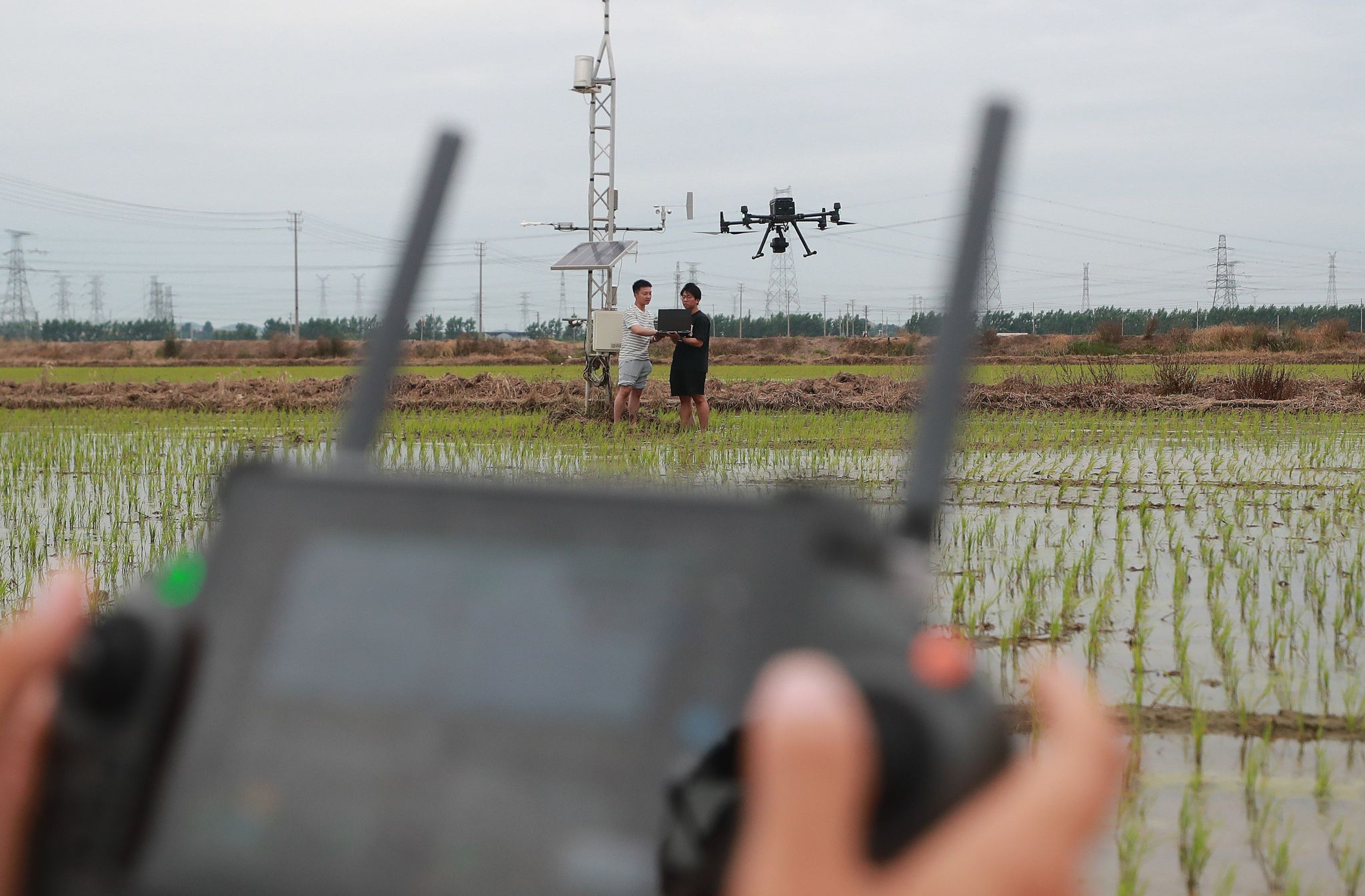 在江苏镇江新区永兴农机机械化专业合作社,欧亿体育·(中国)官方网站农业工程学院师生利用低空无人机采集大田信息。